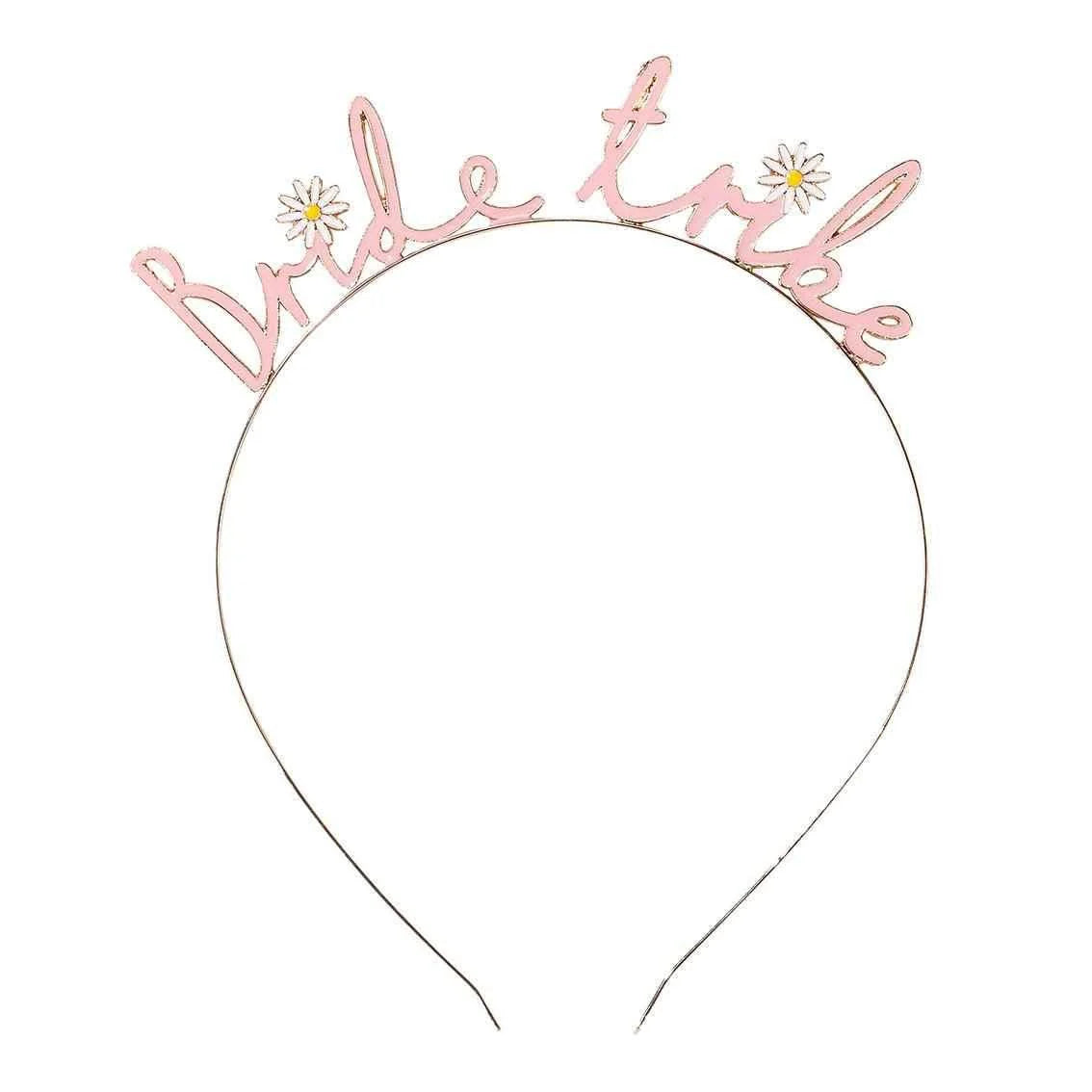 احتفلي مع فريق العروس بأناقة مع عصابة رأس Bride Tribe بتصميم زهري. تتميز بلون وردي معدني ناعم مع تفاصيل زهور الأقحوان الرقيقة، لتكون إكسسواراً مرحاً وأنيقاً ترتديه وصيفات العروس بكل فخر.