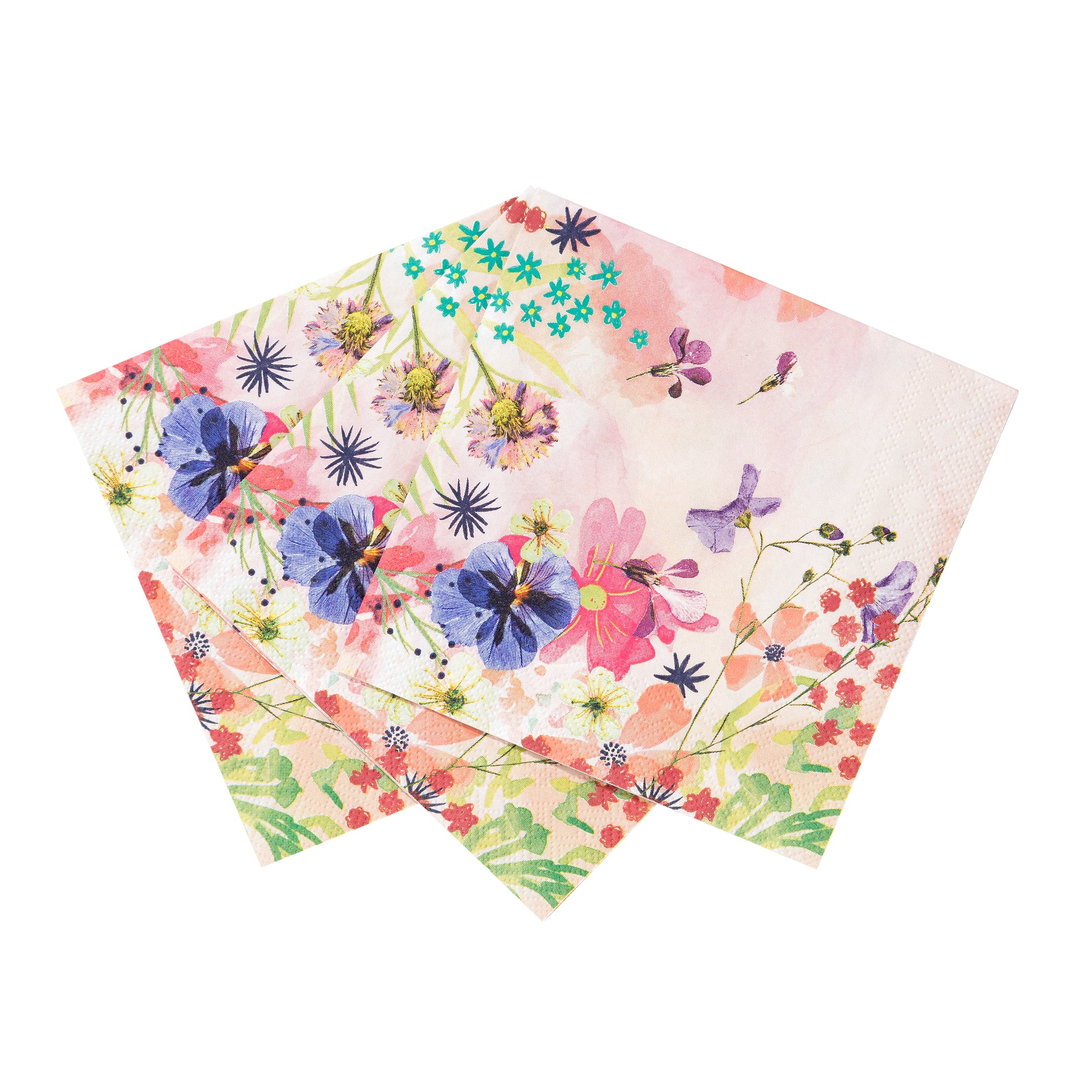 أضيفي لمسة ناعمة ورومانسية إلى طاولتك مع مناديل كوكتيل ورقية بتصميم زهري. مزينة برسومات أزهار فنية بألوان وردية وبنفسجية وزرقاء مع خلفية مائية هادئة تضيف أناقة وجمالاً لأي مناسبة.