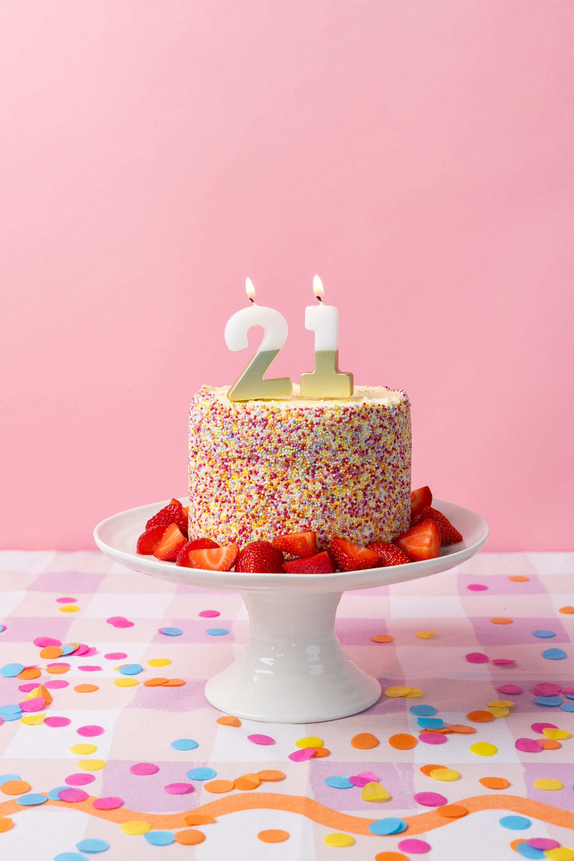 احتفل بإنجاز مميز مع مجموعة شموع رقم 21 باللونين الأبيض والذهبي. تمنح الكعك مظهراً أنيقاً وفاخراً بتصميمها الأبيض الهادئ وتفاصيلها الذهبية، لتناسب أعياد الميلاد والمناسبات المهمة.