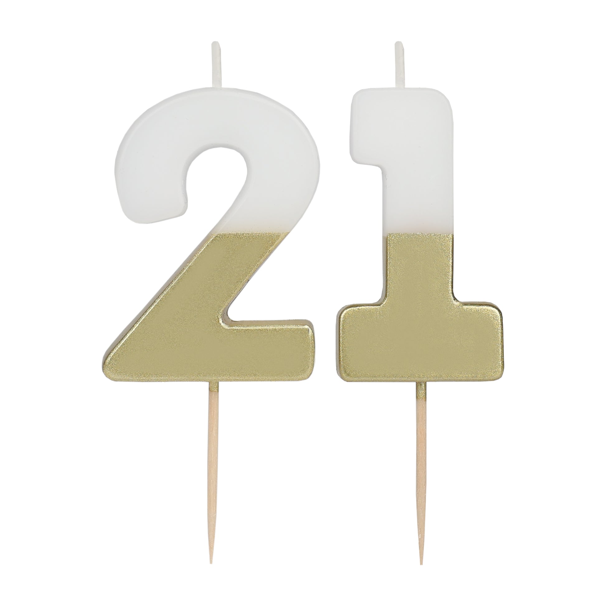 مجموعة شموع رقم 21 باللونين الأبيض والذهبي