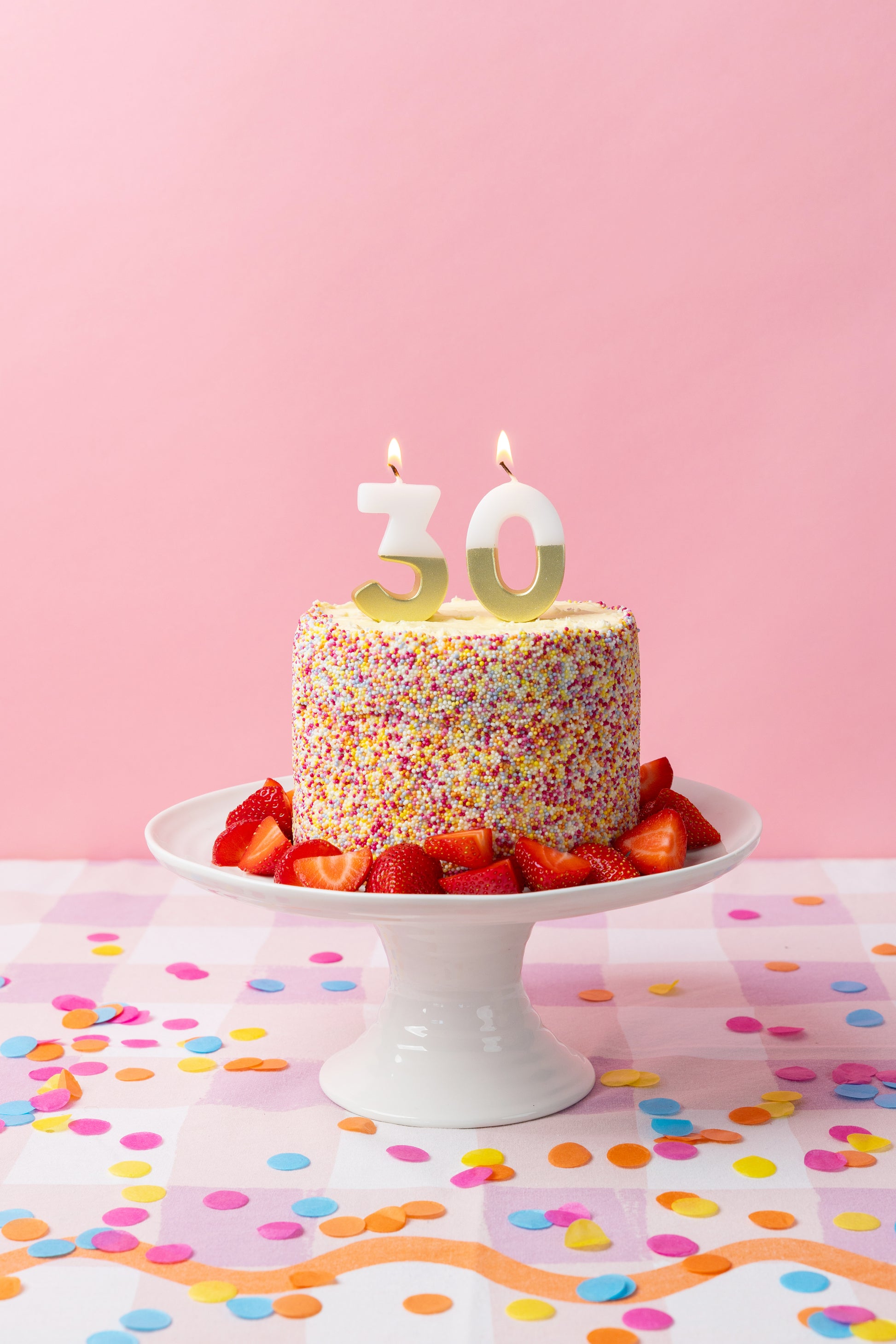 احتفل بمناسبة مميزة مع مجموعة شموع رقم 30 باللونين الأبيض والذهبي. تصميم أبيض أنيق مع تفاصيل ذهبية يمنح الكعك لمسة فاخرة، ومناسب لأعياد الميلاد والاحتفالات المهمة.