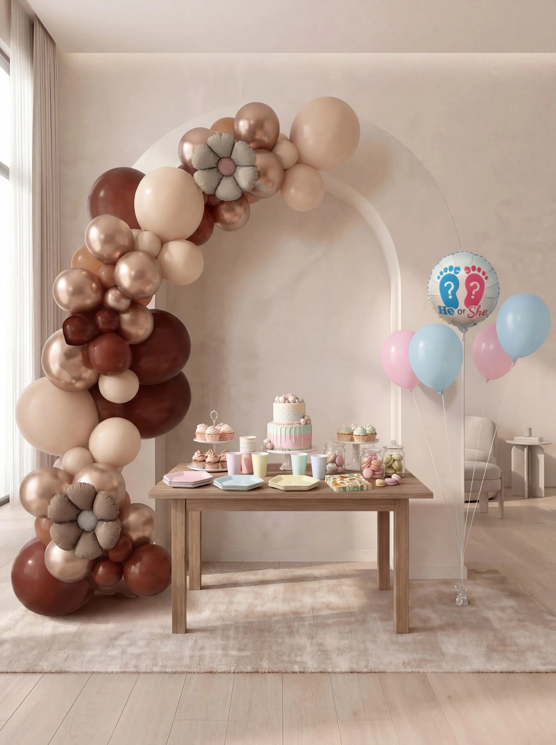 Créez une décoration gender reveal douce et élégante avec ce kit de ballons aux tons neutres. Ce pack est parfait pour un moment de révélation raffiné, une table dessert ou un joli fond photo.