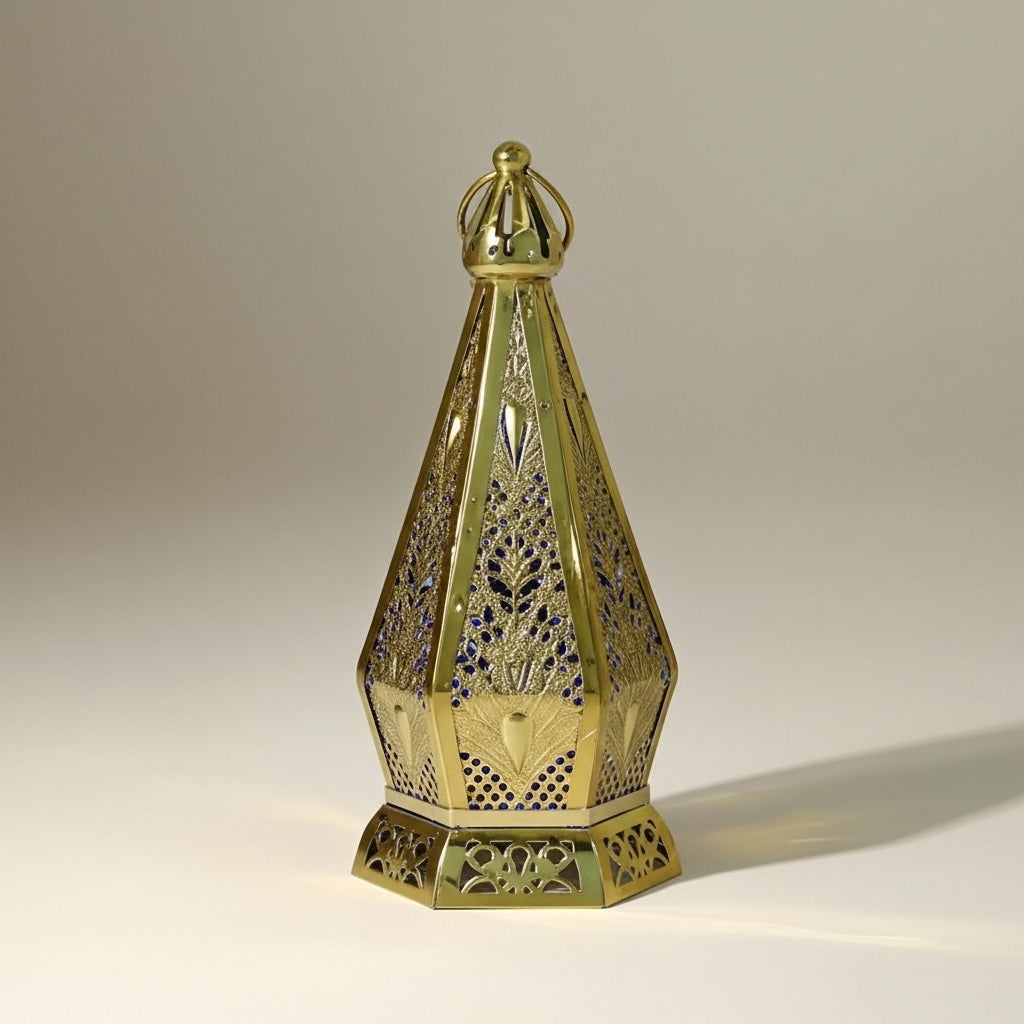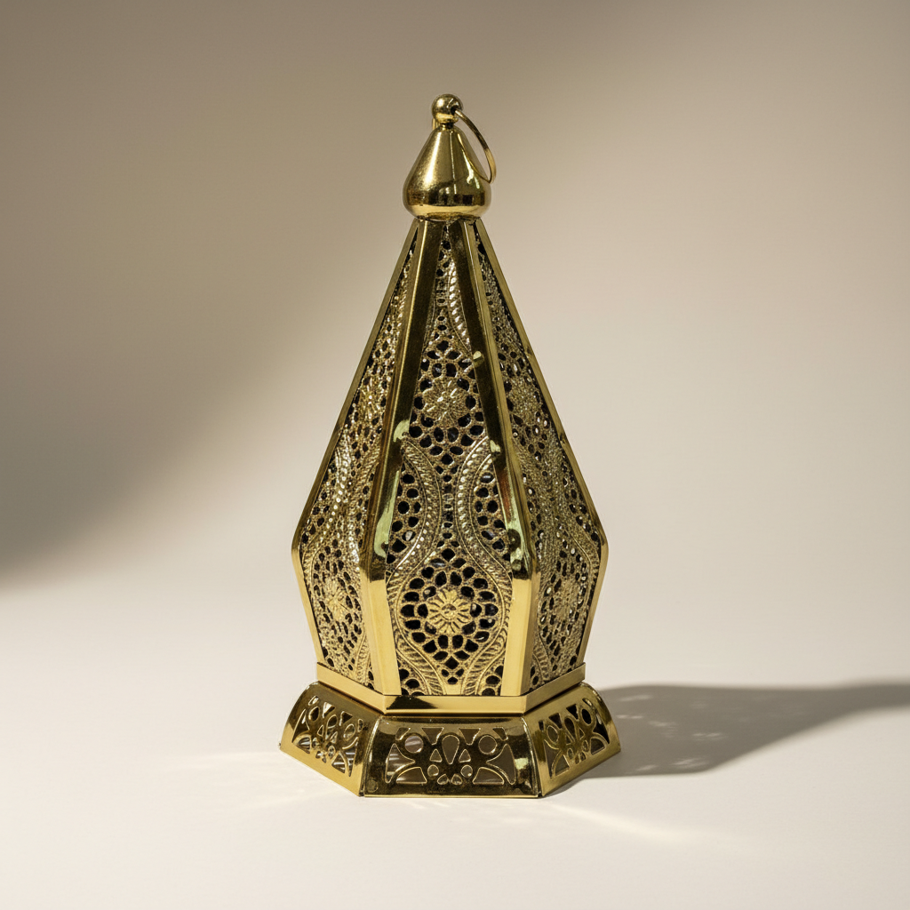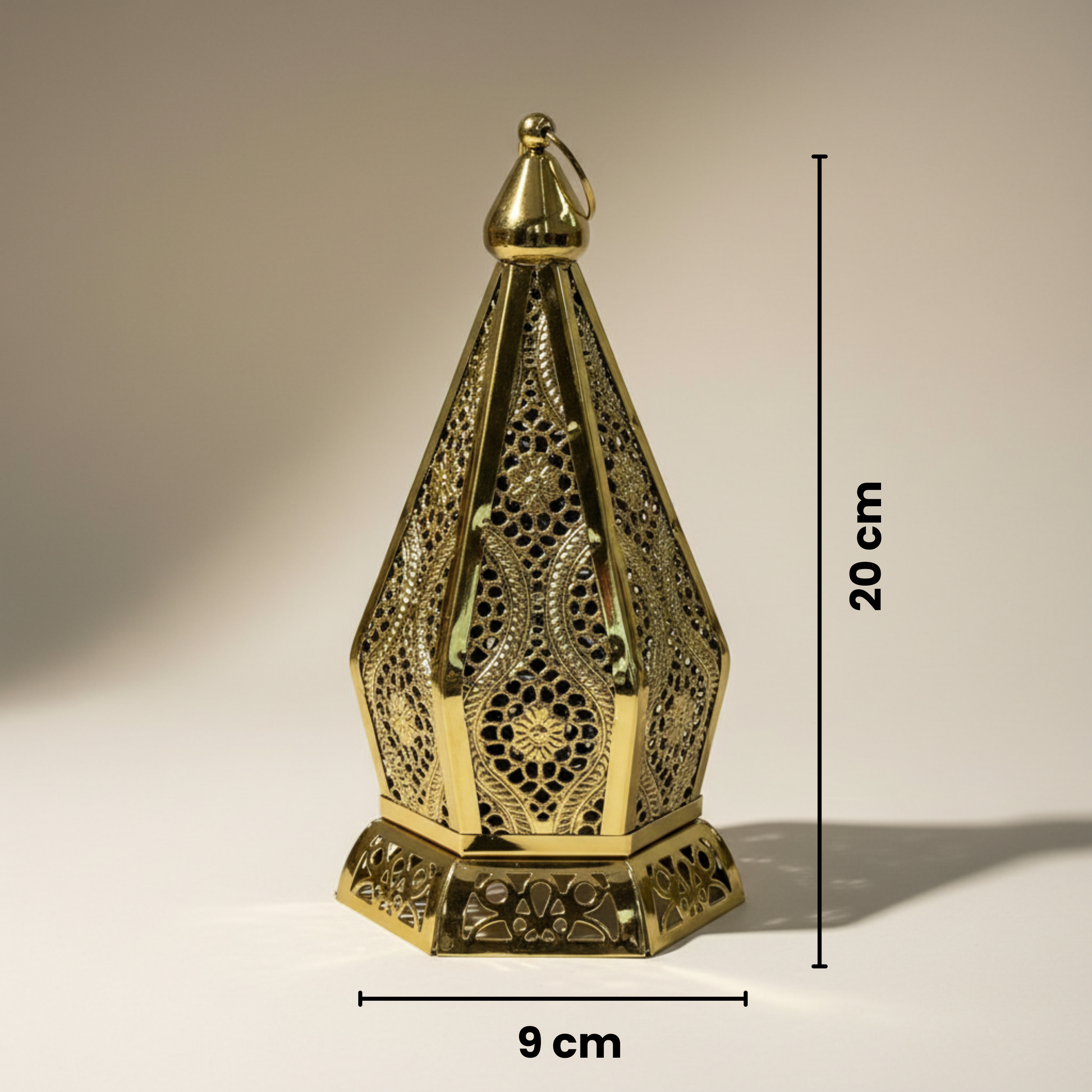 يتميز هذا الفانوس بتصميم معدني أنيق وشكل طويل يمنحه حضورًا راقيًا ينسجم مع روح الشهر الفضيل.