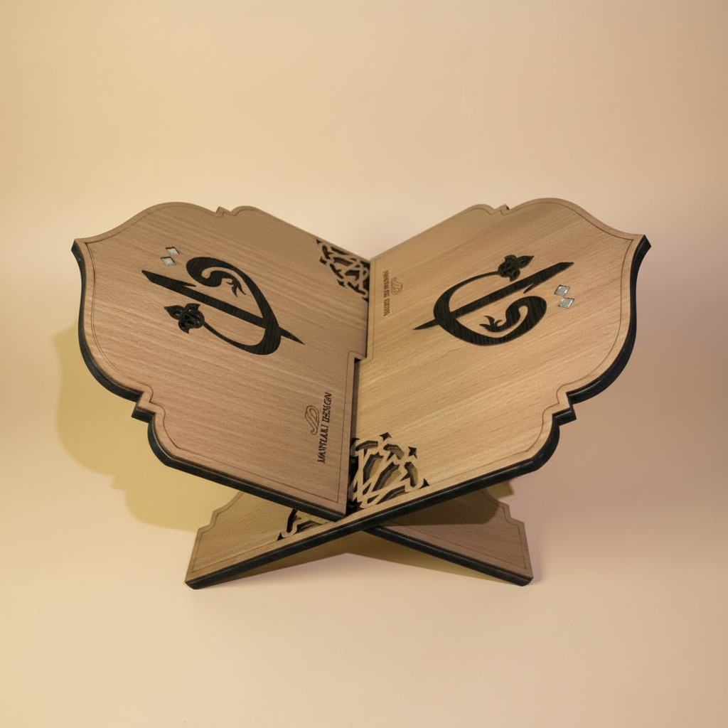 يتميّز هذا الحامل بتصميمه الخشبي الأنيق على شكل مسجد، مما يجعله مناسبًا لزوايا الصلاة ومجالس التلاوة.